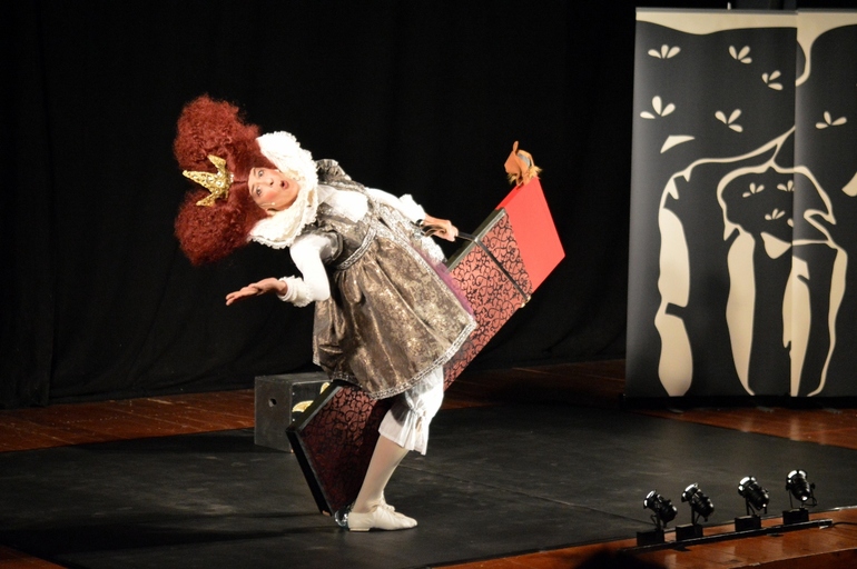 Очень креативная постановка, четыре известные басни, звери из которых ппопросили рассудить их королеву, всех персонажей исполняет одна актриса-мим. Очень понятная, красочная и коротная постановка, моим понравилась)