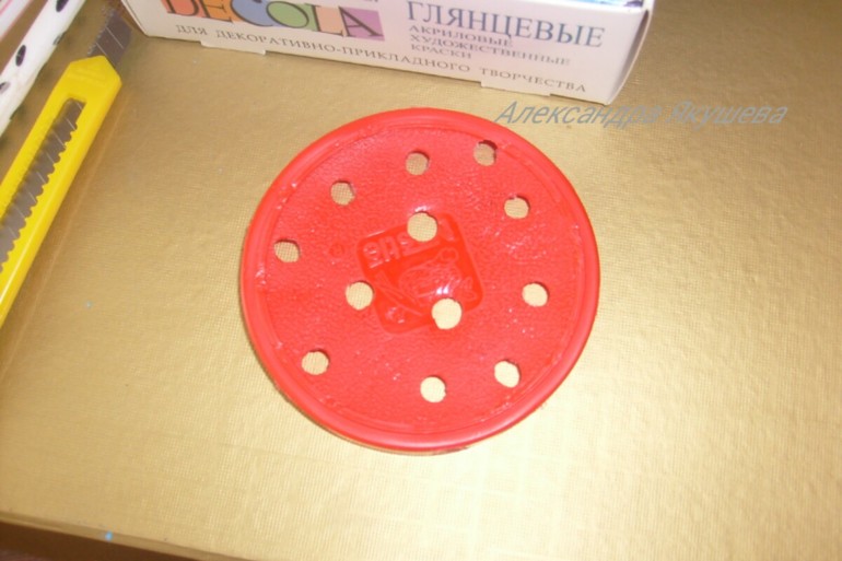 Если есть хороший дырокол' то дырочки в крышке делайте им' если нет' то ножницами проделываем дырочку' вставляем туда палочку' подходящую по диаметру (в моем случае это кисточка для теней) и срезаем лишнее концелярским ножом. Получается тоже аккуратно.