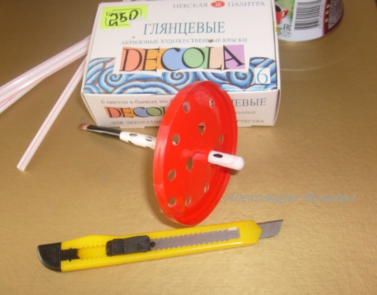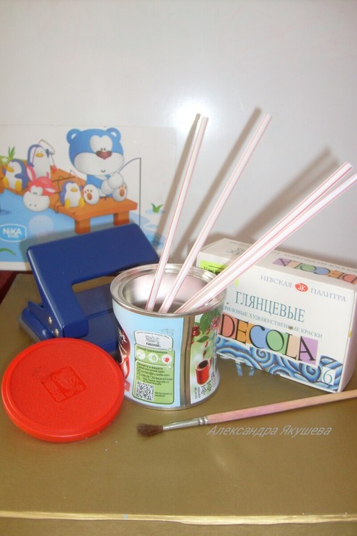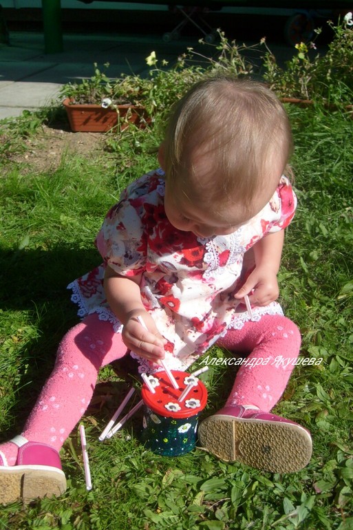 Разрезаем коктейльные трубочки и' впринципе' можно играть' но я за эстетический вид и красоту' по этому украшаем крышечку цветочками' а банку красим акриловыми красками (художник из меня еще тот :-))Вот теперь все!