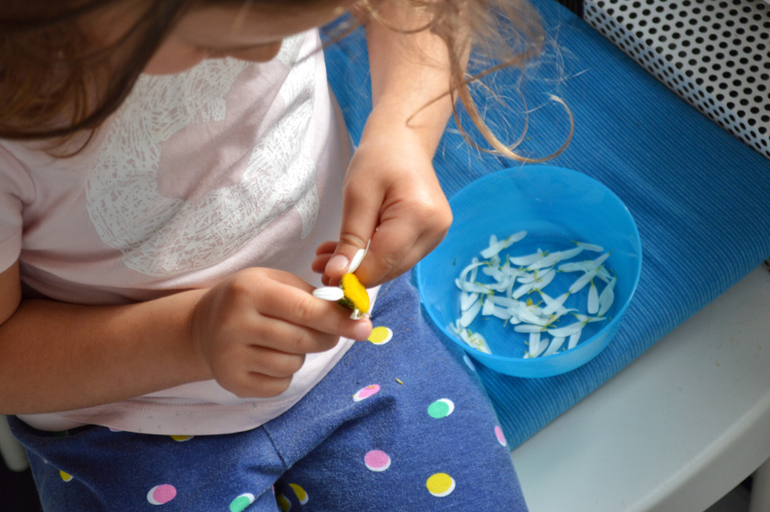 Гадали на ромашках, а потом Даша мастерила кроватки из лепестков для феечек.