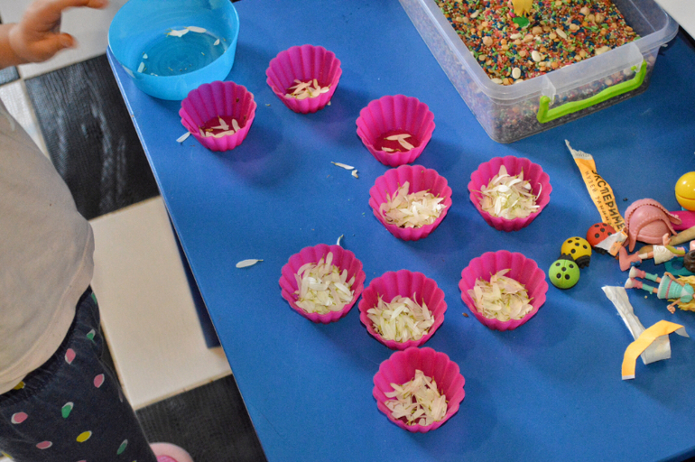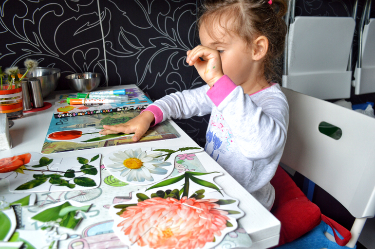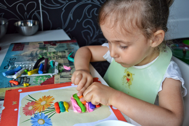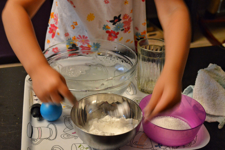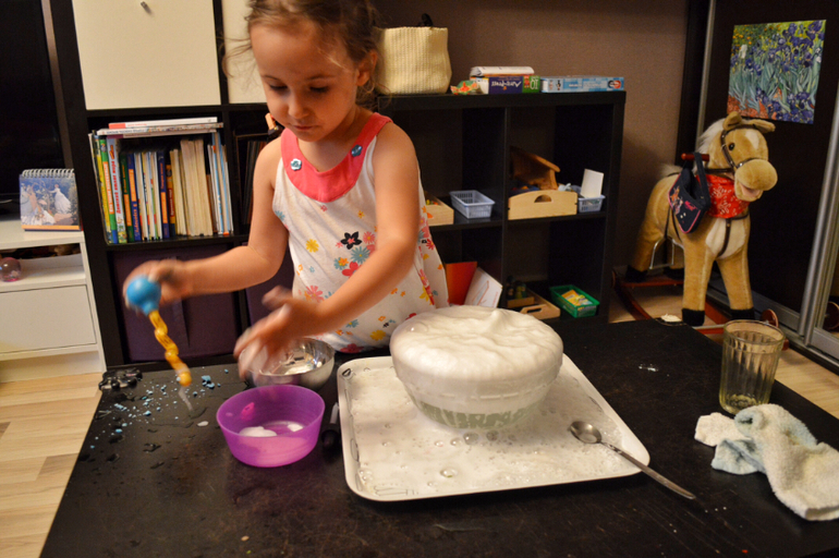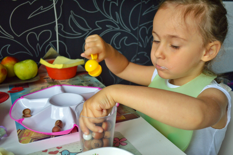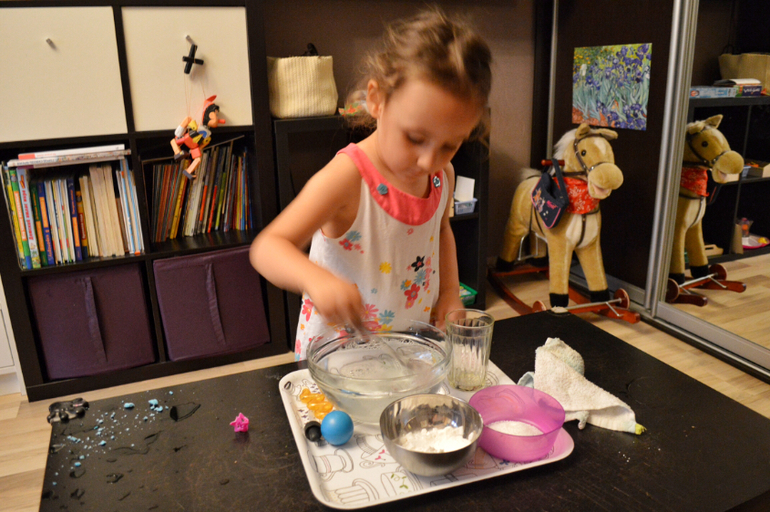 Потом дала все ингредиенты в разобранном виде и дочь уже сама могла их смешать.