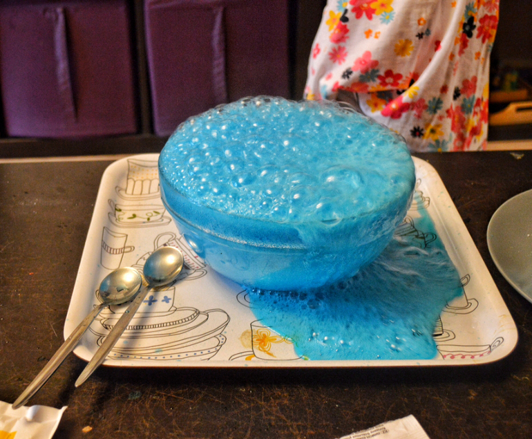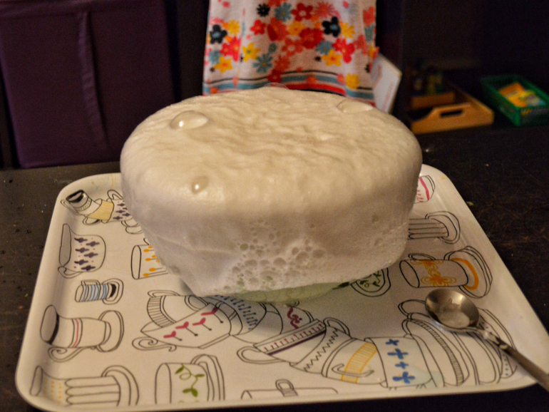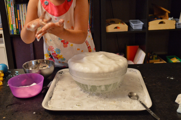 В воде ещё растворили чуток жидкости для мытья посуды для более густой пены.