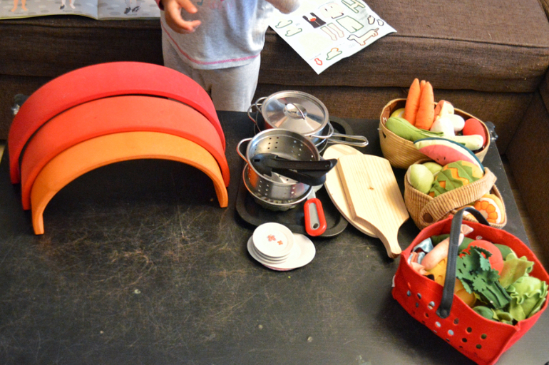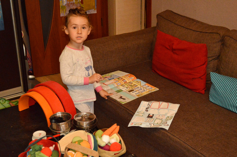Такую кухоньку тоже могу ей соорудить. Мне всегда было очень интересно: как играют те детки, у кого игрушки всегда на одном месте? Даха, например, ну 2-3 дня подготовит и все. Пора убирать с глаз долой. А вот все эти большущие кухни? Дети играют с ними постоянно? Или интерес проходит? Лего, пазлы, итп, которые всегда на одном месте. Детки занимаются с этим сами?