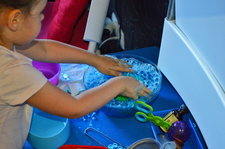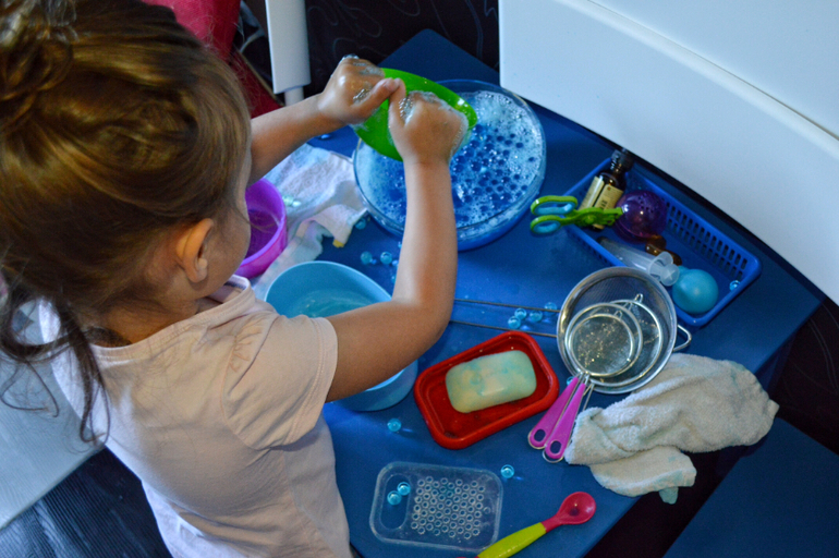 Вообще мыльце стояло на отдельном подносике просто потереть на терке. Дочка решила все смешать и вспенить)) В монтессори классе такие действия бы пресеклись, а я не против. К слову о нашем Монтессори классе. Все лето мы отдыхали. И сейчас я снова начала задавать дочке о возобновлении занятий. Она сказала: не пойду . Я предложила ей новое место. Разочек мы сходили, она рыдала белугой без меня и мы ушли))) Решили вернуться к нашему клубу. Но и там она не захотела меня отпускать. Весной такого не было. Я абсолютно спокойно находилась в раздевалочке и ждала. А сейчас прямо какая-то нереальная тяга к маме появилась. Не очень пока понимаю что с этим делать. А вот в театральную студию она с радостью пошла полностью забыв обо мне, что очень бодрит меня конечно. А вы идёте так сказать на поводу у деток? Бросаете ли занятия? Или водите до победного всхлипа? Решила 2 недели на неё посмотреть, побыть с ней в начале, а потом выходить. Посмотрим, вольётся ли снова. Для меня это конечно очень стрессовая ситуация.