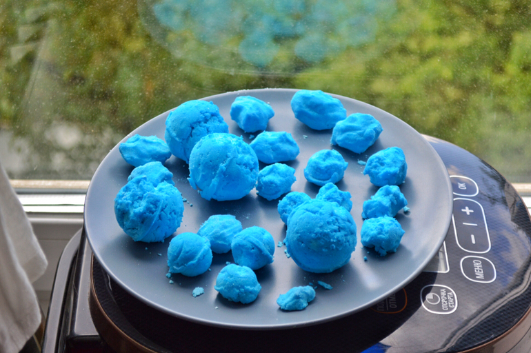 Дарья обожает шипучку. Вот и делаем разные вариации с содой и лимонкой. Слепили из соды шарики, добавив каплю воды, посушили на подоконнике утром и вечером случилась буря)