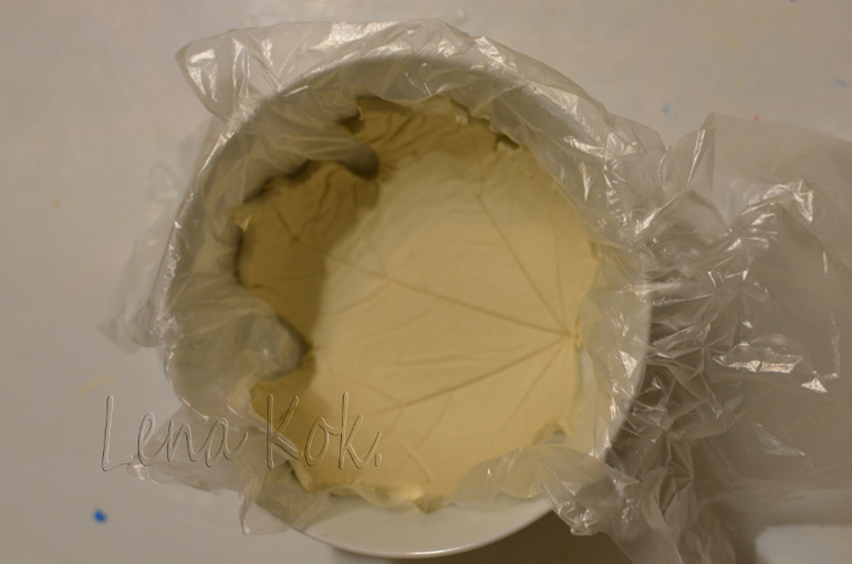 Положить в необходимую чашку(дно застелить пленкой(пакетом) и сушить дня 3(до полного высыхания). На второй день можно убрать из посуды, чтобы мог лучше просохнуть. Пока лист сушился в чашке, он принял форму этой посуды, т.е. края листа подогнулись как нам необходимо.