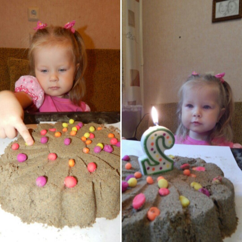 "испекли" праздничный торт, украсили его пластилиновым конфетти и не забыли про свечку (Слава обожает задувать свечки)!