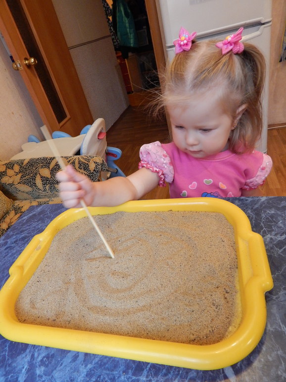 Рисовали на песке: пальчиками, ладошками, ложкой, но больше всего понравилось творить палочкой для суши)))