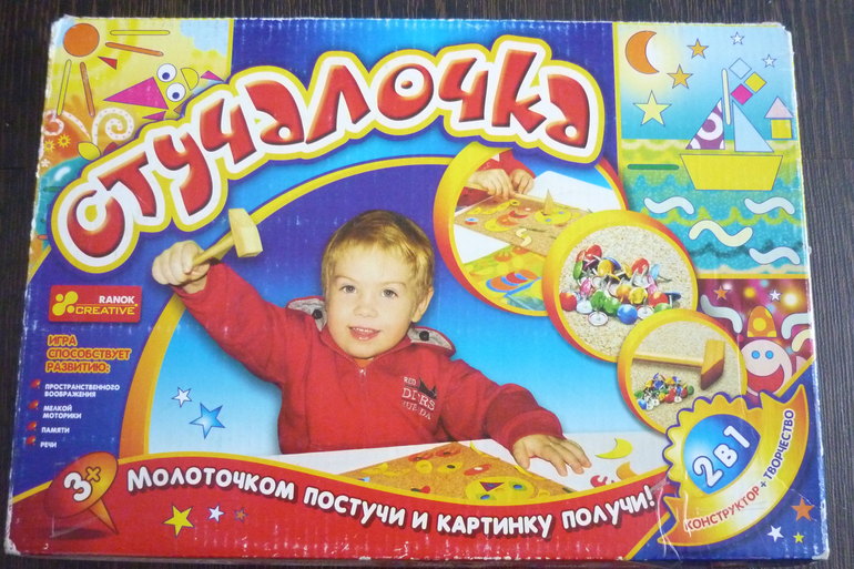 Как рекомендует представитель 3+, но в нее играем примерно с 2,3, но только под присмотром!! Игра содержит острые канцелярские гвоздики. В составе игры: пробковая доска, набор разноцветных гвоздиков. несколько образцов картинок, детали и молоток. В игру можно играть как по образцу собирать картинки, так и придумывать свои.