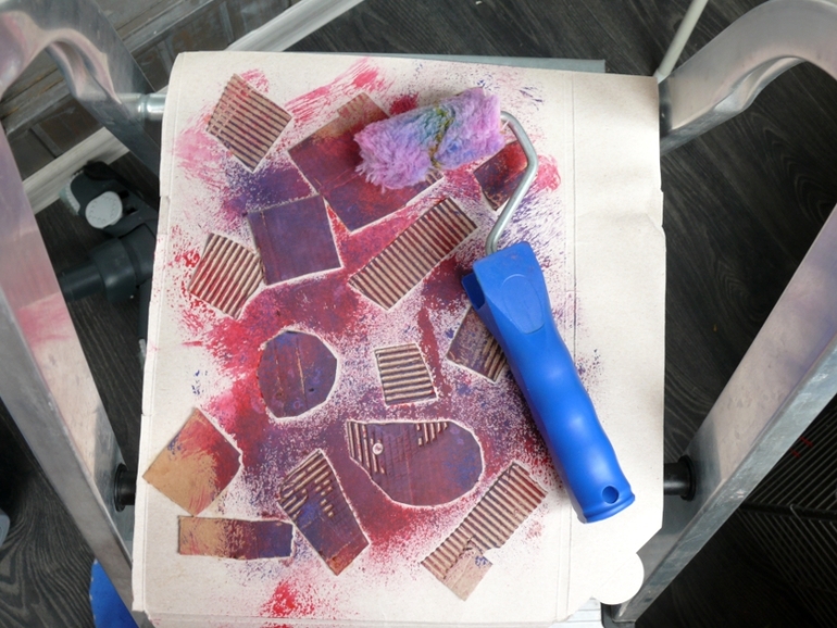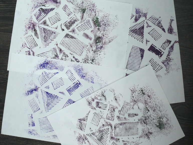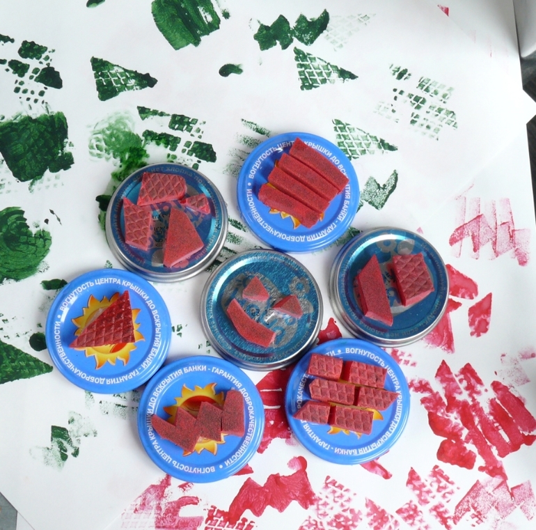Самодельные штампы из вспененного материала. Ниже - пластина для оттисков.
