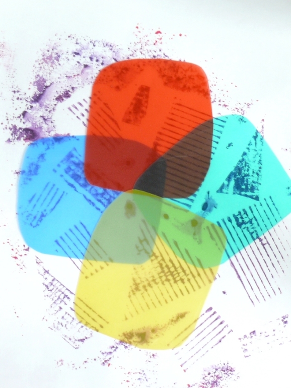Разноцветные стеклышки из прозрачных пластиковых папок.