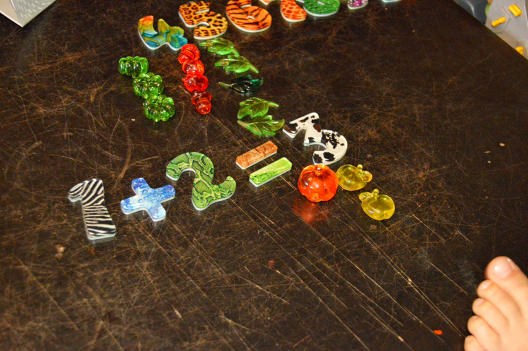 Когда Даша сама посчитала, мы вместе посмотрели простые примеры на сложение и вычитание. Мне не очень нравятся такого рода задания в Кумонах. Они ограничились лишь знаковым значением числа. И ничего не понятно.Другое дело, когда можно потрогать, переложить, увидеть математику глазами и понять, а не заучить.