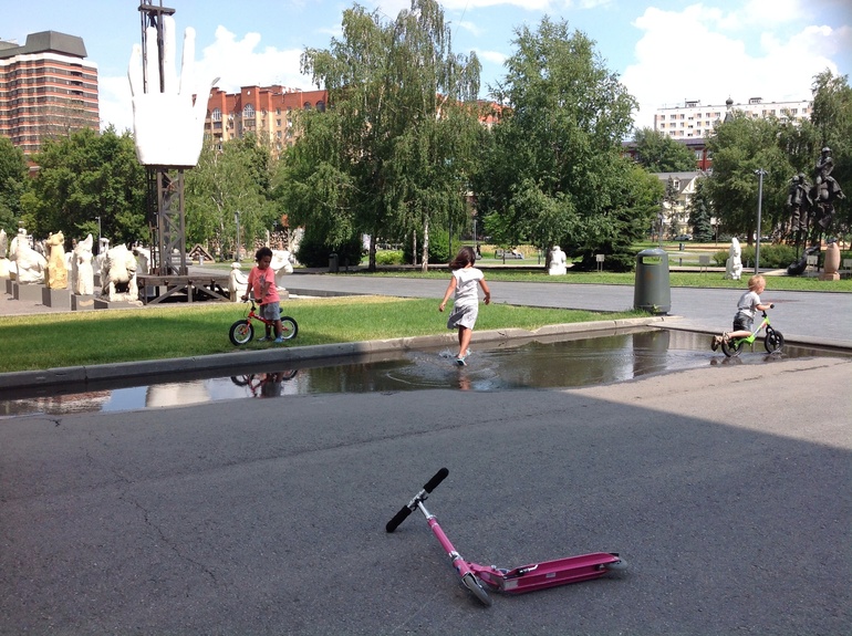 В первый раз мы сами дураки - просто не дошли до них, подумав что они в другом месте:))) В этот раз фонтанчики были уже закрыты - перекрыли из-за фестиваля кухни кажется:( но мы были решительно настроены на купание в этот день так что пошли на пляж в Парк Горького:))