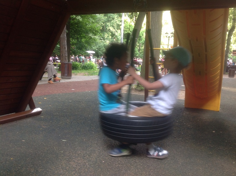 А еще мальчики тут качались:)) фото размытое от движения.. Мне показалось забавным то как смотрятся ноги:))