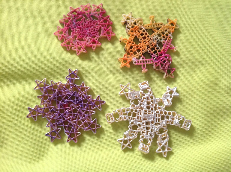 Делали снежинки из макарон, детям понравилось и мне что-то результат не очень... Макарошки надо было другие и наверно все просто в белый цвет...