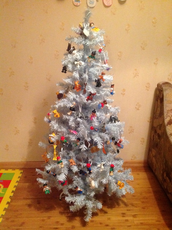 Нарядили елочку в большой комнате. На этом фото только не хватает красной звездочки на макушки! Ее надели позже.