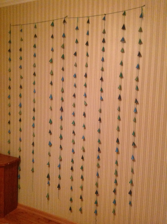 Стена в кабинете папы - гирляндочка с маленькими елочками. Идею подсмотрела у Ирины, не удержалась побежала той же ночью сама делать пока все спали:)))