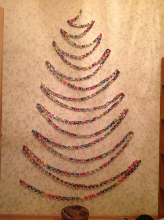 Вырастили у мамы в спальне большууую елочку. Гирляндочки колечки как в моем детстве. И детям понравилось их делать. Напомнила мне про нее Lucertolone:)