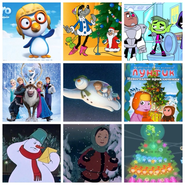 Холодное сердце, Snowman, снеговик почтовик, ну погоди - новый год, 12 месяцев, фиксики, малыш пороро, юные титаны - второе рождество , лунтик. Посмотрели еще несколько, на фото нет