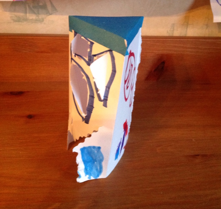Сегодня сынок только рисовал а у меня такой домик со "стекляными" окошками получился:)