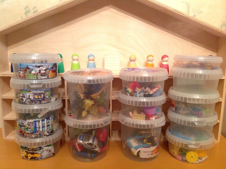 А тк во мне часто просыпается белка:) то в очередной раз отмывая коробочку из под покупной квашеной капусты подумала что можно пока наши детальки сложить в нее! А что? Удобно вроде! Крышка плотно закрывается, значит ничего не просыпется, и в то же время ее легко открыть дочке, сама коробочка прозрачная, а значит дочке будет видно какие детальки там лежат!
