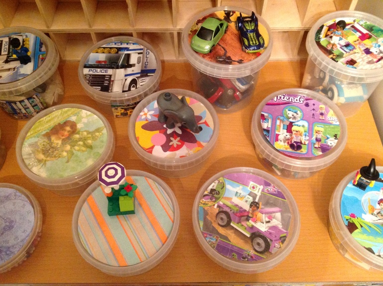 На фото выше видно что у некоторых есть еще и картинка на бочке... Первые коробочки у меня остались голыми. Тк полоска картона никак не хотела держаться га остатках клея, а издеваться над коробкой еще и скотчем, не стала. Потом под руку попался каталог лего из которого и вырезала нужные картиночки
