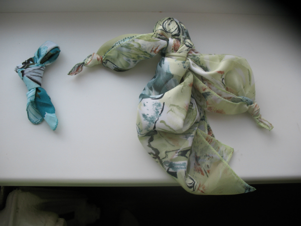 Две платочных куклы, то есть кукла и зайка. Дочке понравились.))