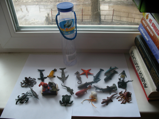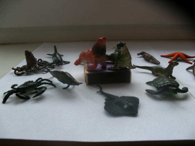 Вот этот В наборе 24 животных. Упакованы в тубу. Нам очень понравились морские рыбы-звери. Приятная резина, запах ещё есть-резиновый. В наборе; дельфин, черепаха, звездочка, морской конек, морж, тюлень, котик, краб, скат, пингвинообразный:), рак в ракушке, осьминог, 8 различных рыб, крокодильчик и ещё какой-то зверь котикообразный (не особо в них пока разбираюсь).