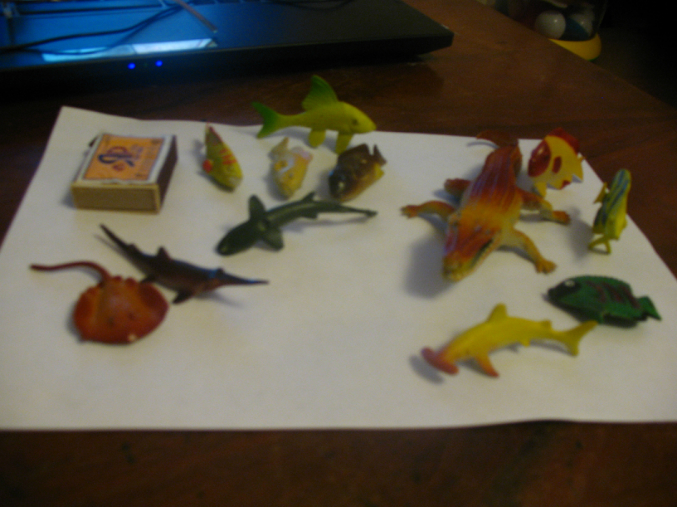 Во втором наборе животные яркой расцветки: огромный крокодил, скат и 10 разных рыб.