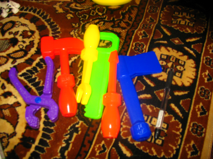 А ещё я обнаружила и заказала вот такой - замечательный набор инструментов (чтоб дочка не тырила у папы отвертки:) ).Он оказался намного большего размера, чем я ожидала. Очень приятный, кусачки двигаются.