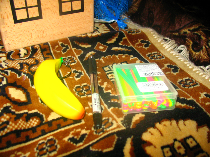 Антистрессовый банан - мягкий приятный материал, размером чуть меньше шариковой ручки, честно говоря, не знаю, как его можно использовать брелком, а вот дочке для игр попозже (а то пока она его пытается покушать) самое оно!)). В ассортименте, кстати, есть в виде шоколадки, арбуза, клубнички и шоколадного батончика.