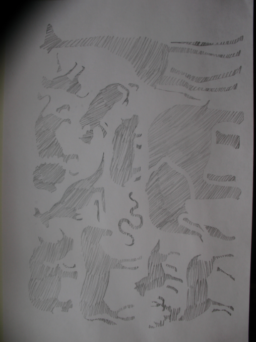 Я для образца порисовала средне-заточенным карандашом и большой (12) плоской кистью - гуашью.
