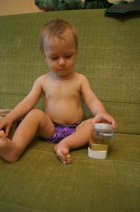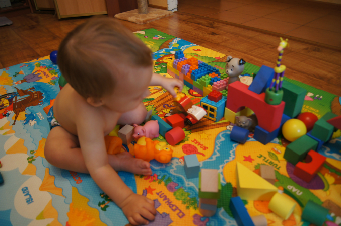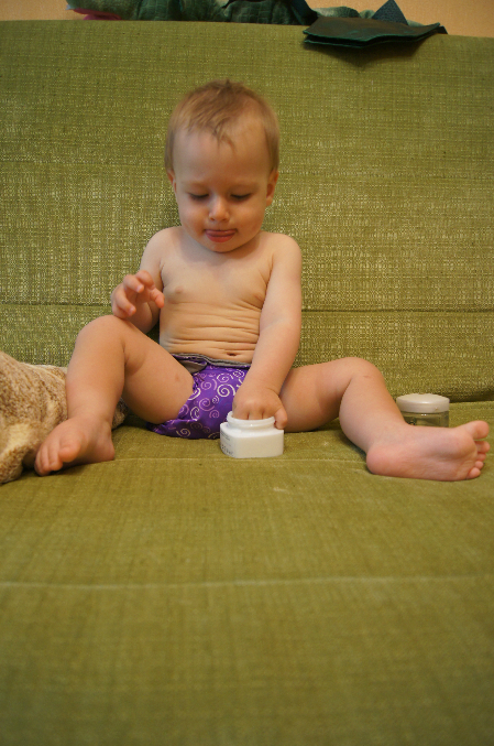 5. Откручивать крышечки с баночек, внутри которых есть что-то интересное. Крышки Саша крутить ОЧЕНЬ любит. И очень радуется, когда внутри баночки что-то оказывается. А ещё любит убрать это что-то назад в баночку, закрутить крышечку и постучать баночками друг о друга :) Или построить из баночек башню!