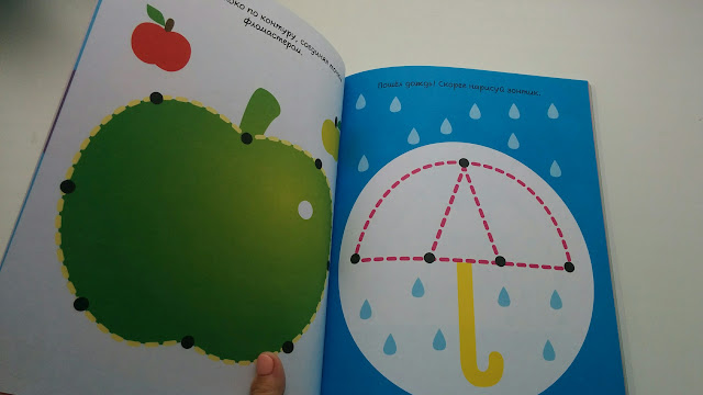 Очень милое и довольно объемное пособие по графомоторике. Соединить по точкам 1-10, обвести по пунктиру. Возраст стоит 4+, но, думаю, можно пробовать с 3.