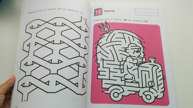 Но в итоге поняла, что промахнулась. Там буквально парочка лабиринтов в начале попроще, а дальше идут мелкие и сложные. Поэтому даже не давала Владу и вернулась к тетрадкам для младших - Волшебные лабиринты на 4-6, вот это уже по возрасту, хотя в конце тоже есть уже помельче, в принципе можно было и Увлекательные взять на 3-5, но теперь уж будем решать эти! В тетрадках по 40 заданий, в каждом 2 лабиринта: 1 в виде картинки, а второй (на обороте листа) - классический, просто линии. Расположены от простого к сложному