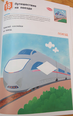 Тоже много наклеек, задания разные. Найти тень, дорисуй, сложить лист, обвести букву, лабиринты. Для 5 лет слишком просто, думаю, 3-4, отлично.