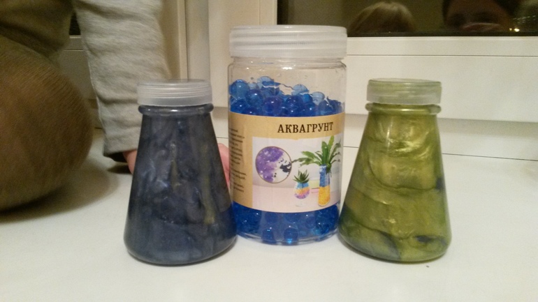 Чем хорош Лизун? После него не надо убираться. Руки не измазаны (хотя помыть надо потом обязательно) , он тянется, расплывается, льется, и он так нравится детям! Недостаток- он не вечен. Со временем испортится. А аквагрунт для меня просто открытие. Я не ожидала, что он прыгает, как попрыгунчики. А еще, если оставить его в сухом месте, усыхает до размера горошины. Потом в воде опять увеличивается. Вообщем вручила детям и началось. ...
