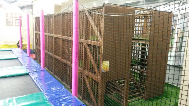Есть еще второй этаж. На нем комнатки с воротами, для игры в футбол и хоккей. А так же несколько комнат для проведения детских праздников. Со второго этажа можно спрыгнуть вниз на кучу матов. (Но это только для детей 5+).