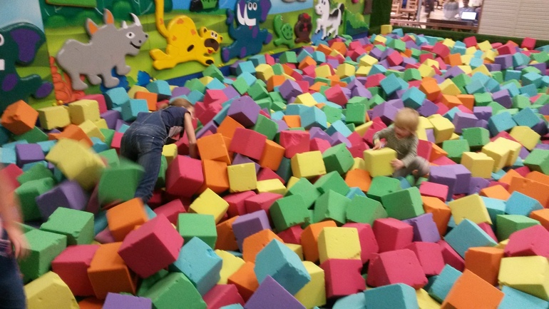 С батута можно с разбегу прыгать в паралоновые кубики. Кидаться ими, валяться в них, строить из них (только аккуратно на обочине, что-бы не мешать тем кто прыгает)