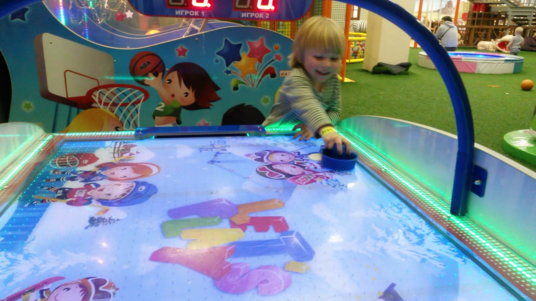 Два аппарата, не знаю, как называются. (Наигрались вдоволь). На заднем плане 2 аппарата в которых надо попасть мячиком в кольцо.