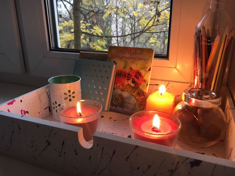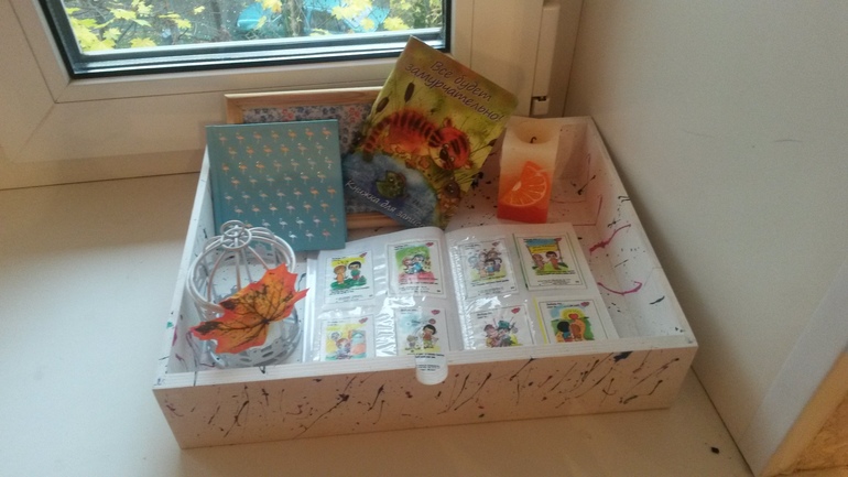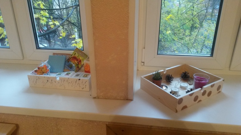Они вытащили из него ящики, покрасили их акриловыми красками и наполнили настроением. Экспозиция периодически меняется. Но пока все же еще преобладают осенние мотивы.