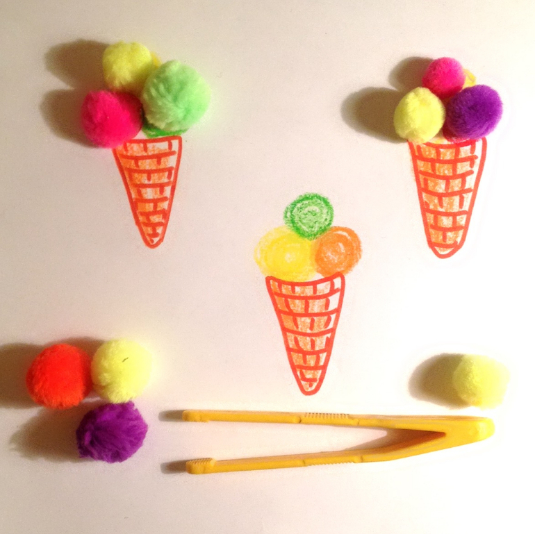 Делаем мороженое, помпончики раскладываем пинцетом.