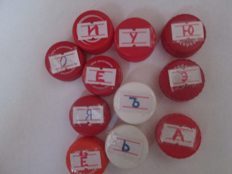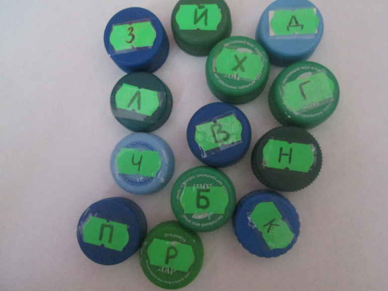 Продолжаем изучать-повторять буквы со старшей дочкой. Обычное лото с картинками, карточки, плакат у нас есть, дочка смотрит на них и называет букву. А без картинок не может буквы запомнить. Вот я и решила сделать лото без картинок. Так как для младшей было сделано мемори из крышечек, для старшей сделалось лото из крышечек. Легко, быстро, просто. Финансовых затрат почти никаких (ну 10 рублей на липкую ленту).