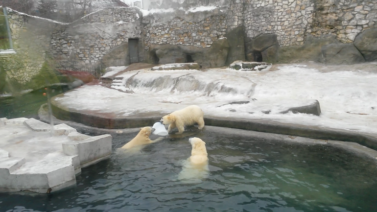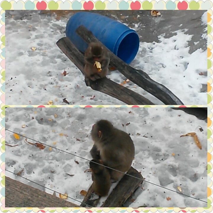 Была удивлена, увидев обезьянок на снегу. Они так лапки поджимали. Но на табличке прочитали, что они переносят мороз до -15.