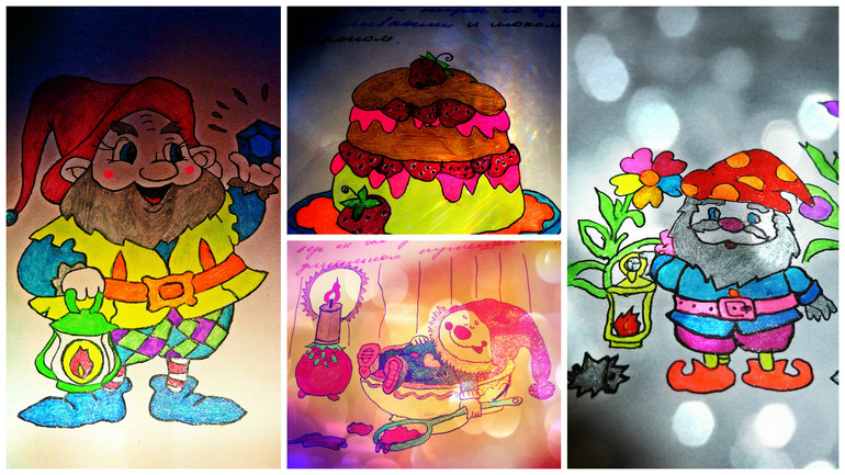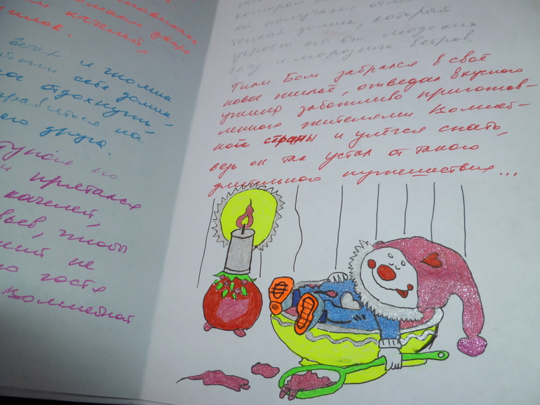 Рисунки я рисовала в конце письма, когда глава сказки заканчивалась. Т.е. они не большие вот такие (на фото).