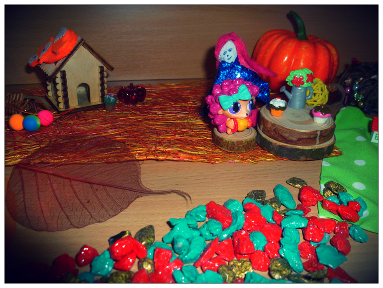 На следующий день, после праздника, Евочка получила неизвестный пакет, в котором были атрибуты для постройки гномьей поляны и жилья.