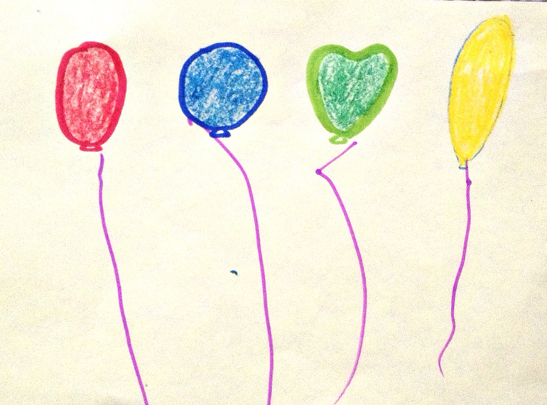Теперь учимся рисовать: нарисовать веревочки для шариков (на удивление ровно нарисовал)
