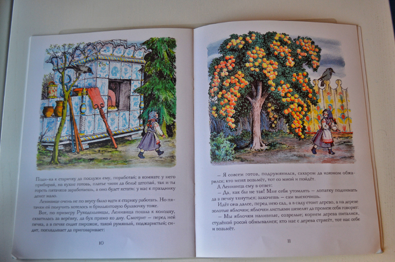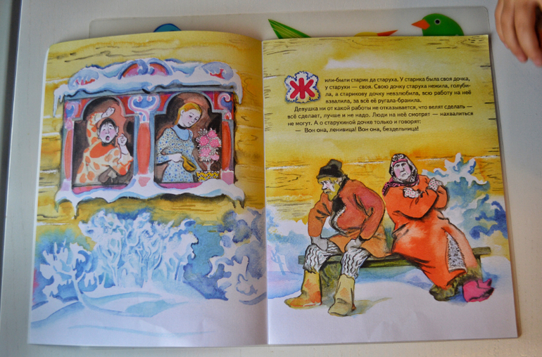 Морозко-сказка созвучна с предыдущей. Смысл один, но истории разные. Иллюстрации тоже совершенно иные. Лица прорисованы чётче, эмоциональнее. Рукодельница здесь уже достаточно взрослая дама, а не девчонка. И эта сказка короче. Но честно говоря, лично мне "Мороз Иванович" пришёлся больше по душе.