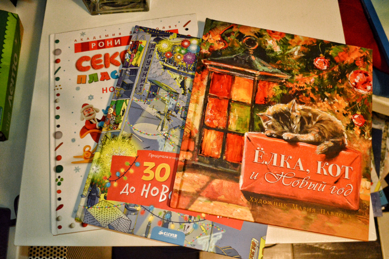 Ну а это часть книжечек, припрятанных мной на период подготовки к Новому Году. Уже второй год к Даше прилетает Снеговик-почтовик и приносит ей письма с заданиями или загадками по поиску подарков.