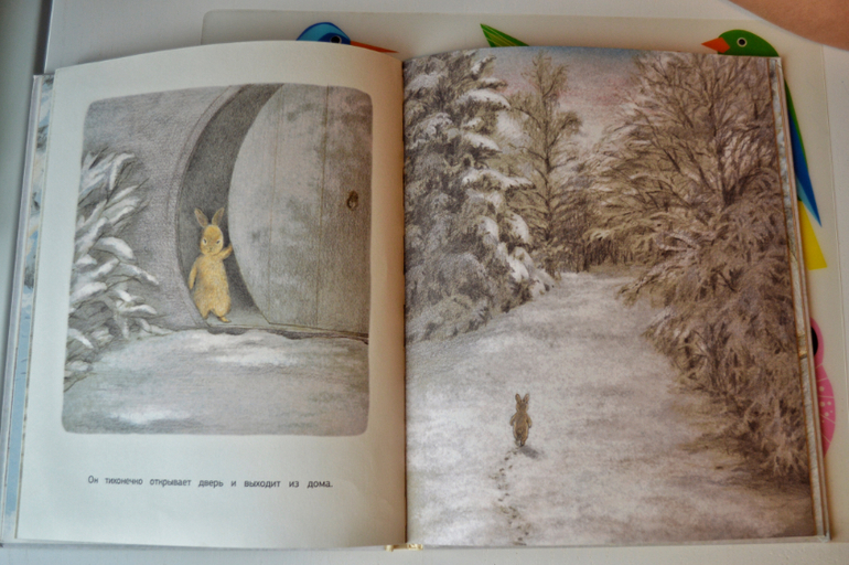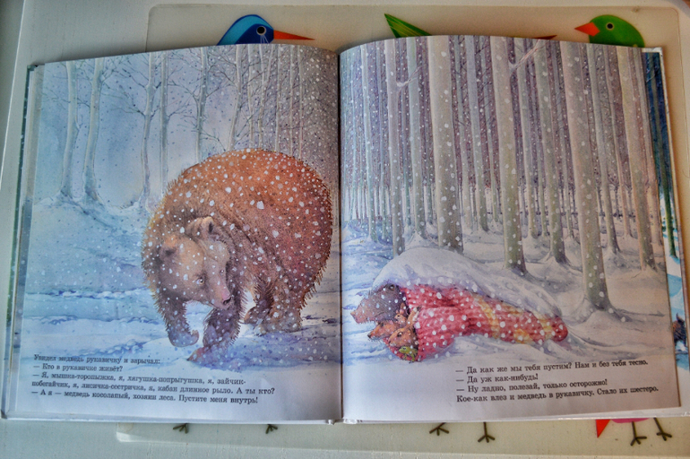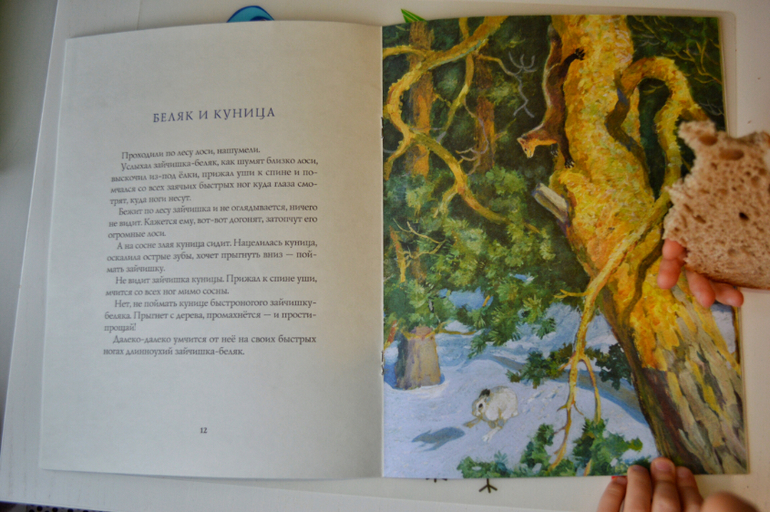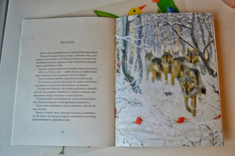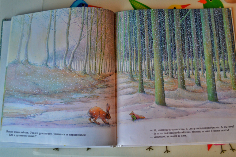 Итак, "Зима в лесу". Супруг, просматривая эту книгу, не поверил, что иллюстрации создавались непосредственно для этих историй. Он думал, что это картины. И правда, иллюстрации настолько тщательно прорисованы, настолько реалистичны и талантлив, что в принципе достаточно только их. Но и текст не отстаёт: небольшие, интересные зарисовки из жизни зверей.
